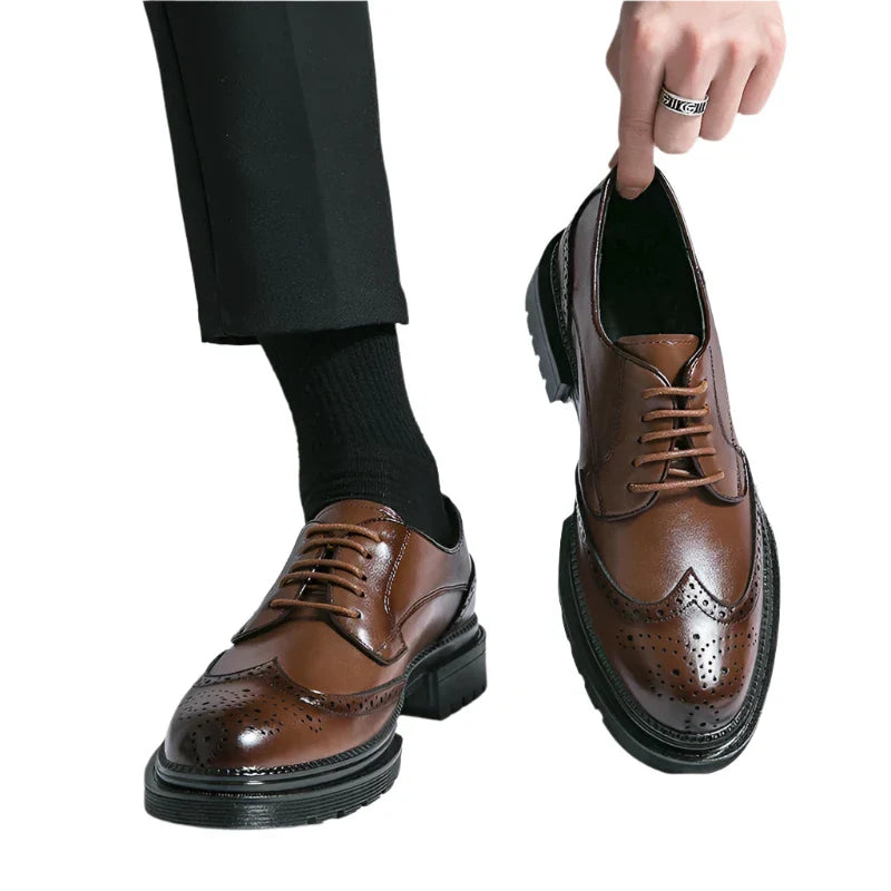 Experience refined professionalism with The Regent Leather Oxford — a genuine cow-leather masterpiece crafted for men who value sleek design and long-lasting comfort. Built with a geometric upper pattern, this slip-on Oxford delivers an elevated work-ready appearance that transitions seamlessly from boardrooms to evening dinners. The soft PU insole and cow leather lining ensure breathable comfort, while the cow-muscle outsole provides stable traction and durability. Designed with a pointed toe and minimal stitching, it balances sophistication with everyday practicality.